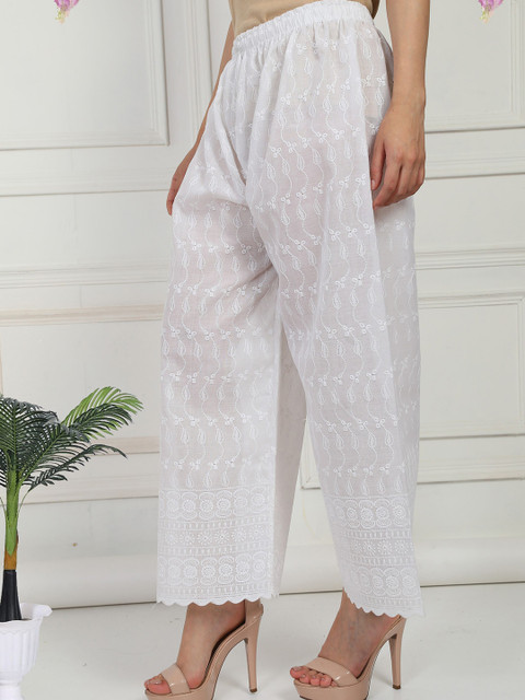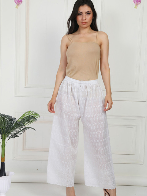 Fashionable Women Self Design Knitted Wide Leg Chikankari Palazzos