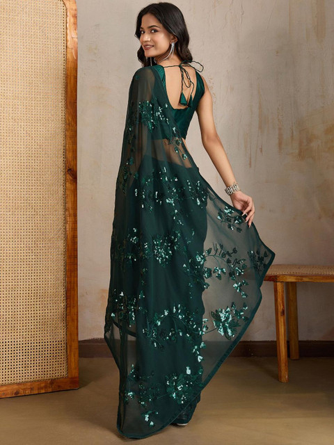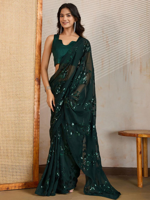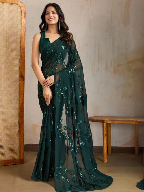 Elegant lightweight georgette saree with floral sequins, perfect for festive or party wear.