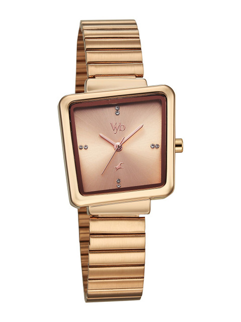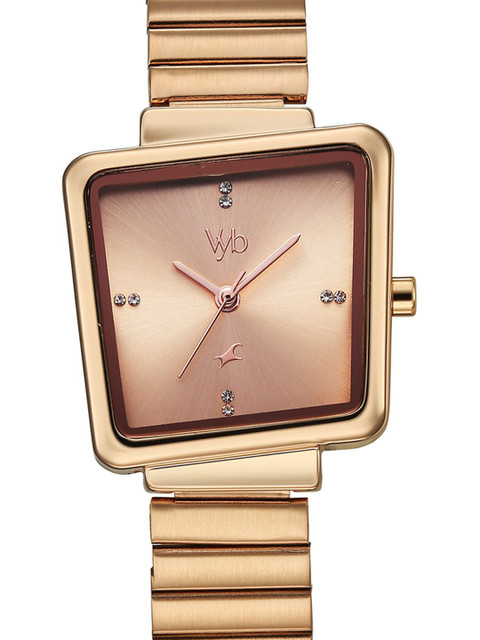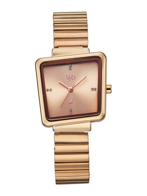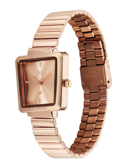Strap Style: rose gold toned, bracelet style, stainless steel