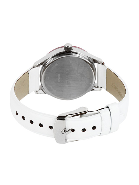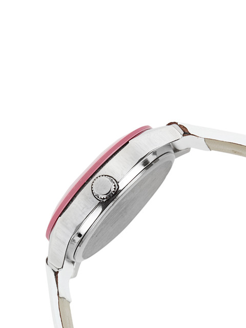 Strap style: White leathernbsp;strap secured with a tang clasp