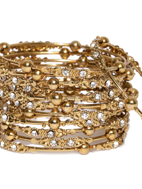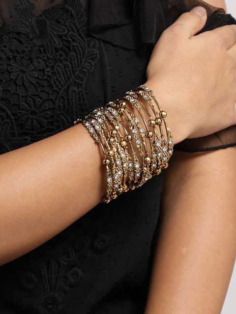 Make a unique style statement with these intricately designed bangles that will effortlessly enhance your ethnic ensemble from Fida. Team them with a traditional saree and embellished sandals for maximum effect.