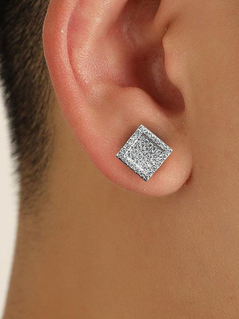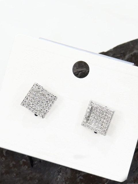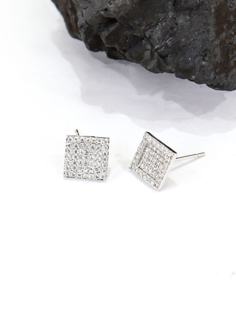 Silver-toned square studs, silver-plated, has cubic zirconia