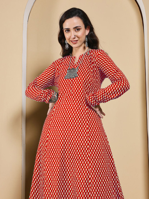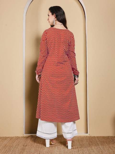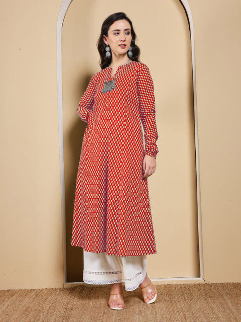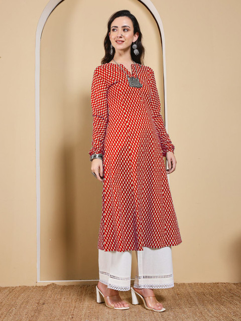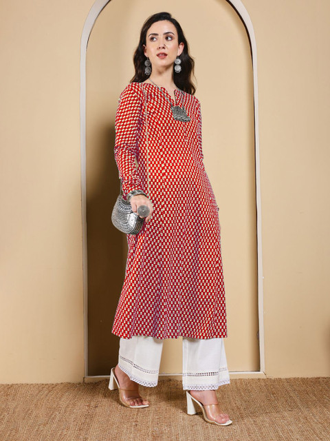 Red & White A-Line kurta for Women