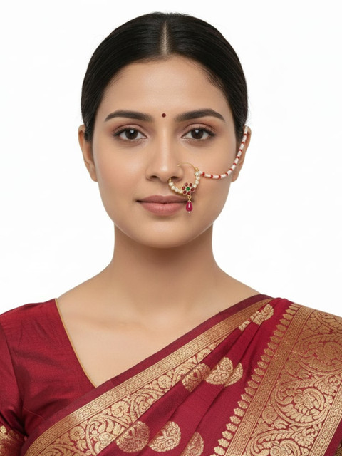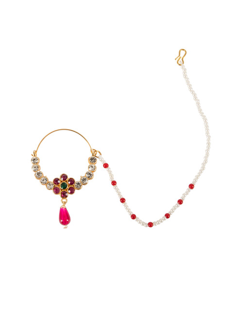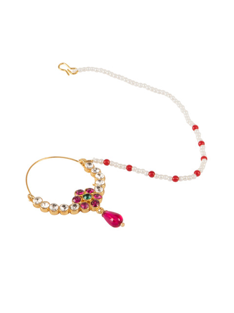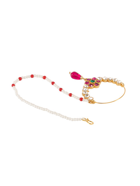 Gold-toned, pink and white cubic zirconia studded & beaded details