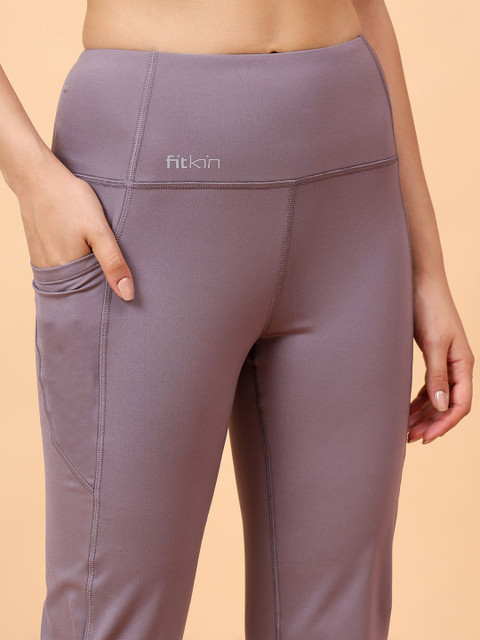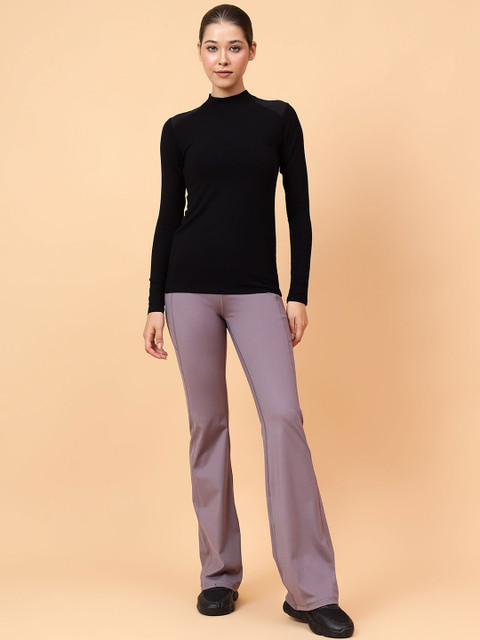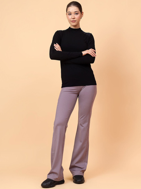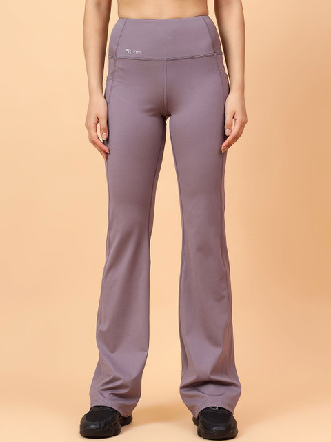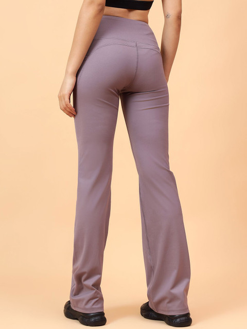 Mauve Solid AllDay Bootcut Active Pants Anti slip high rise waistband Squat free non transparent Super soft four-way stretch fabric No camel toe Curve sculpting Side pocket for mobile,key storage All day comfort