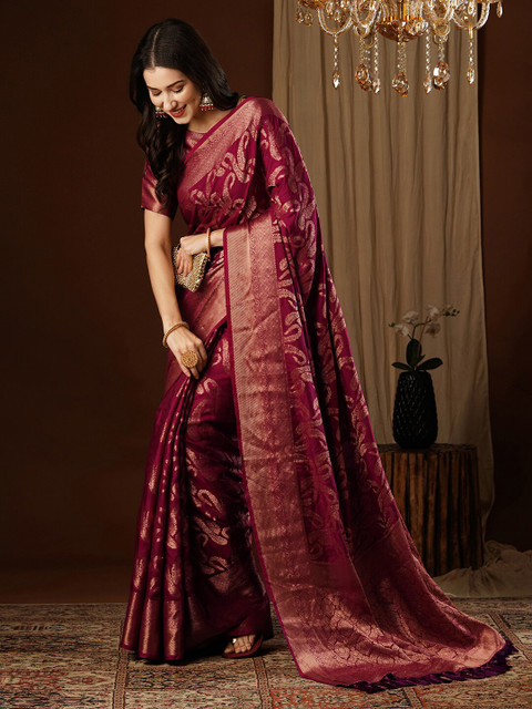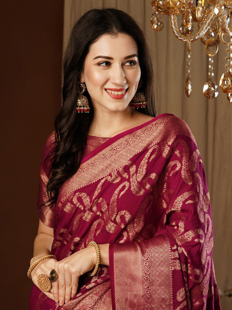 - Purple and gold-toned banarasi saree