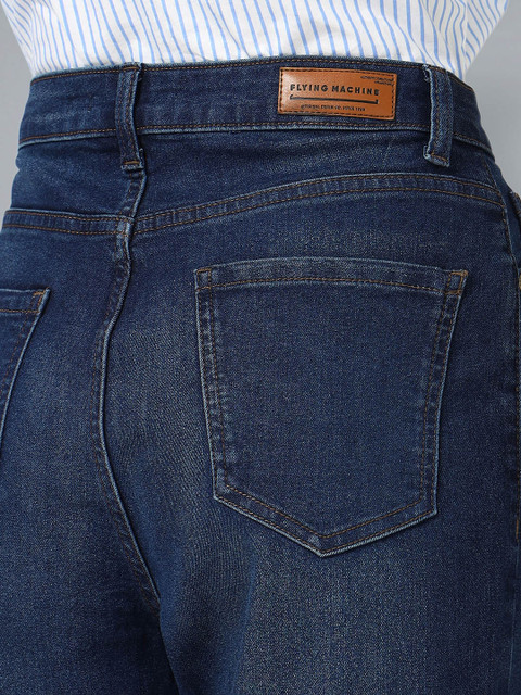 Flying Machine Women Straight Fit High-Rise Clean Look Stretchable Jeans