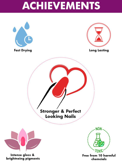 | Benefits | Fast DryingLong LastingStronger &, Perfect Looking NailsIntense gloss &, brightening pigments |