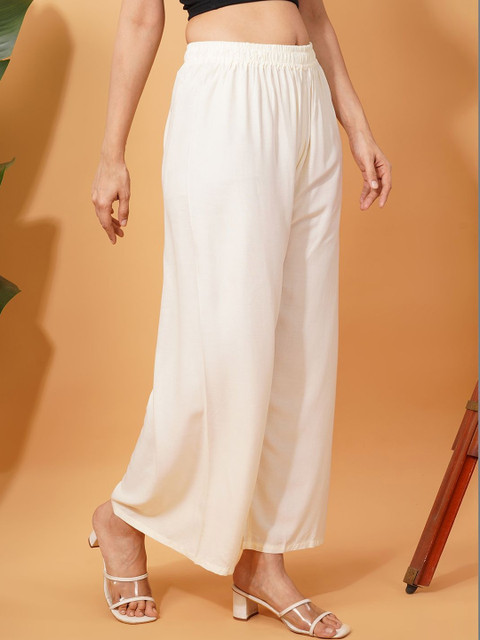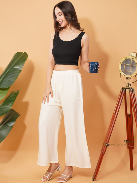 - Beige and Cream-Coloured Woven palazzos