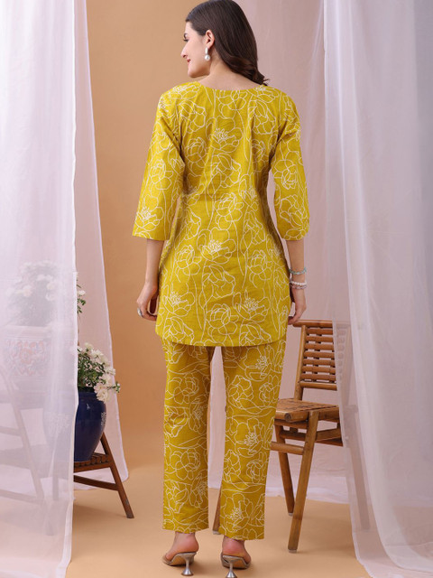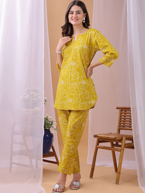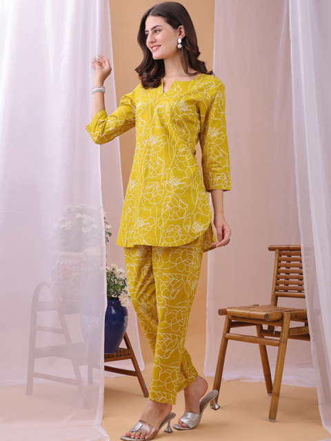 Fourleaf Printed V-Neck Top With Trousers Co-Ords