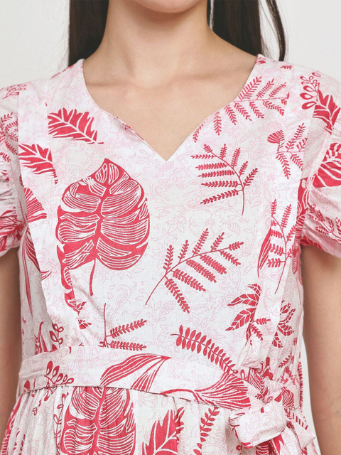 - White floral print fit & flare dress