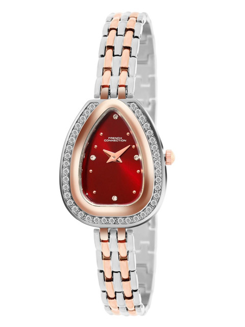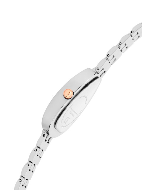 Strap Style: rose gold toned, bracelet style, stainless steel strap with a foldover