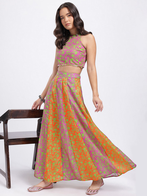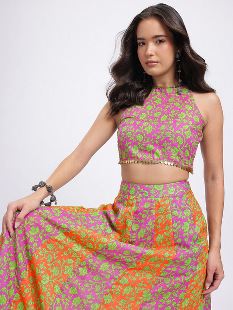 Introducing the Floral Print Maxi Set, designed for your next brunch or getaway. The fit is pure dopamine dressing–sleek sleeveless top meets a skirt that’s basically a walking dream. It’s giving boho remix.