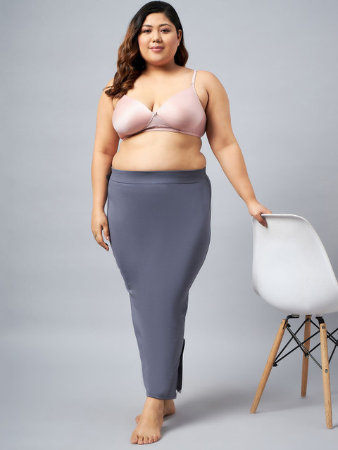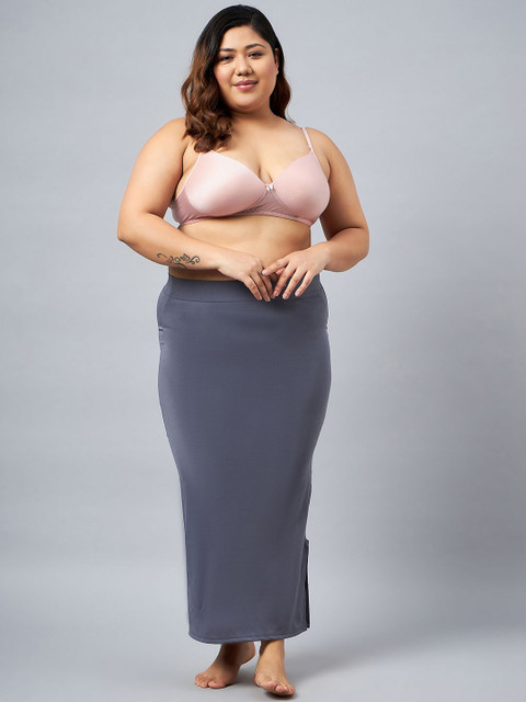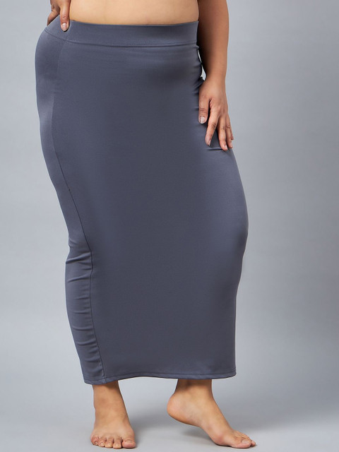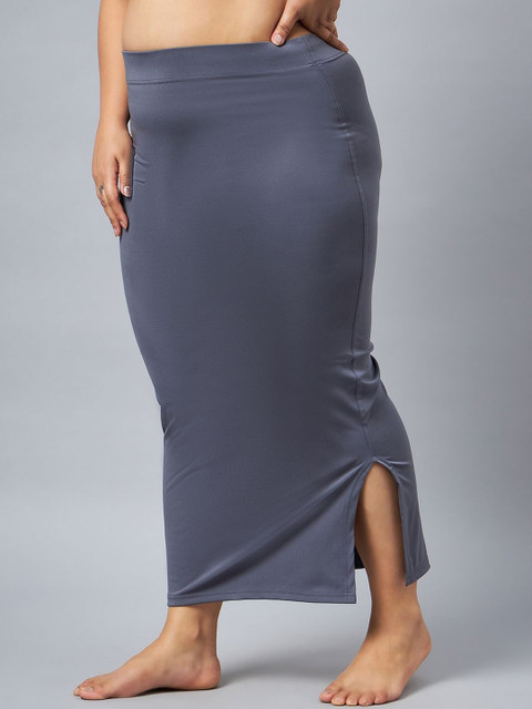 Grey Plus size seamless saree shape wear peticoat for women, has an elasticated waistband, and stretchable fabric . This saree skirt comes with a side slit for easy movement.