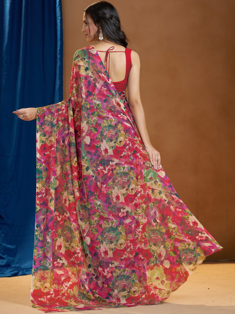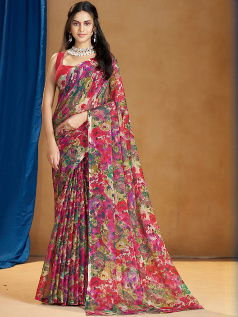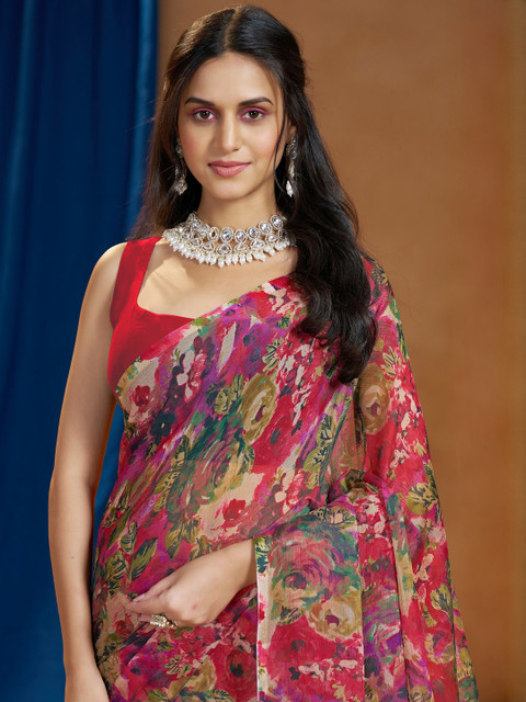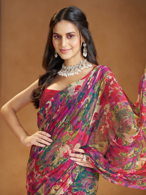 - Red, pink and green saree