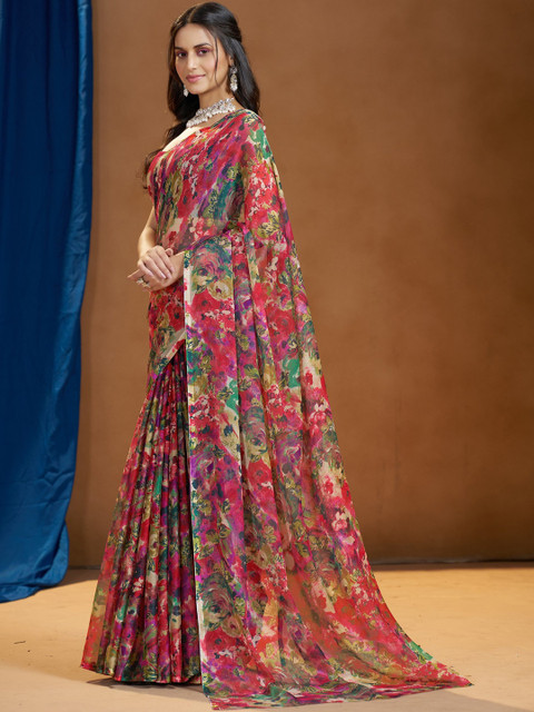 - Floral printed saree with no border