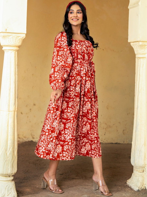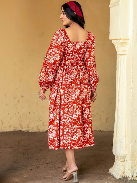 - Red and Red Floral Print Fit & Flare dresses