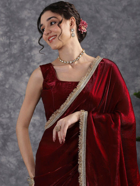 The brown saree has a rich, graceful shade that enhances its overall appeal. The fabric quality is good, and the saree gives a neat and sophisticated look suitable for special occasions.