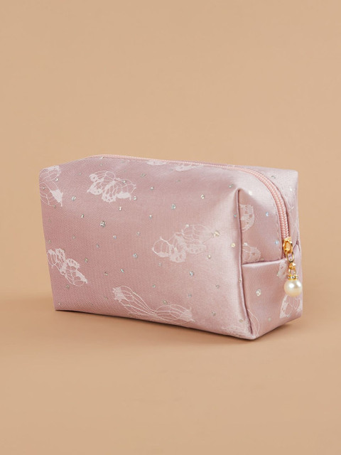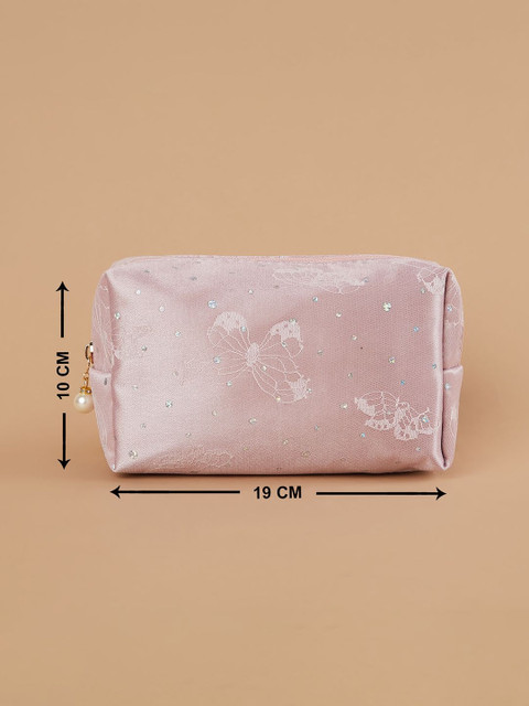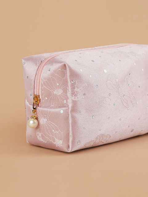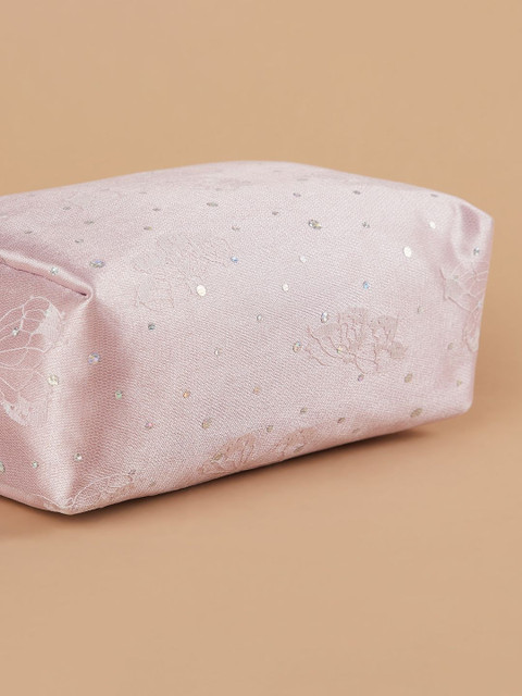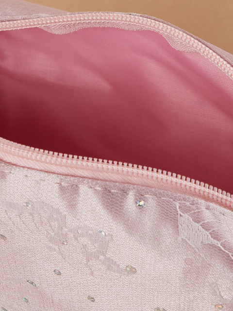 This vanity pouch features delicate lace and a secure zip closure. Perfect for organising essentials with a touch of style.