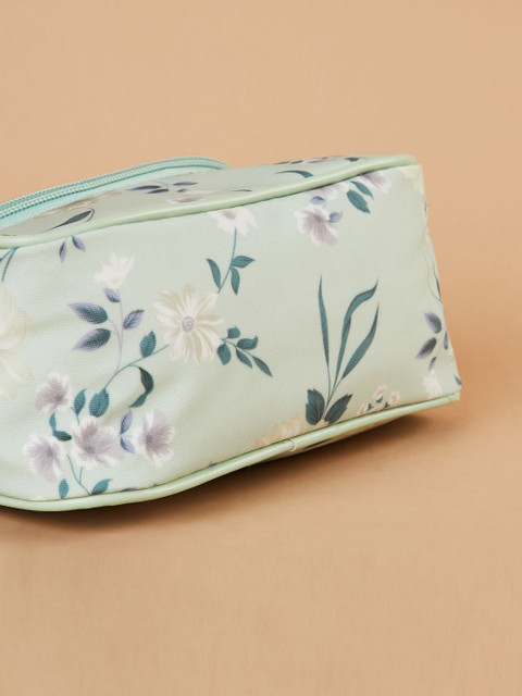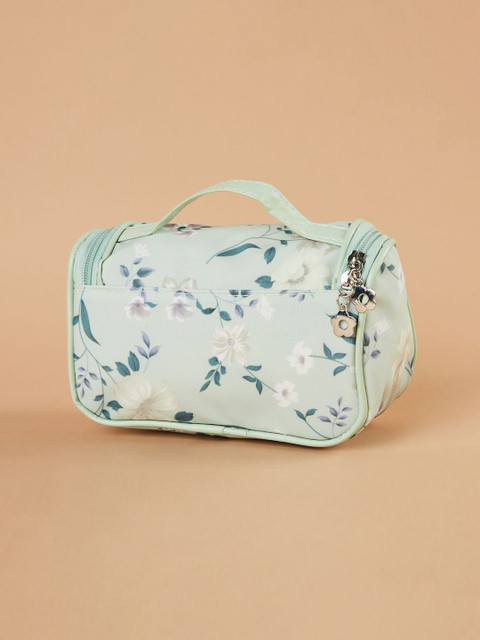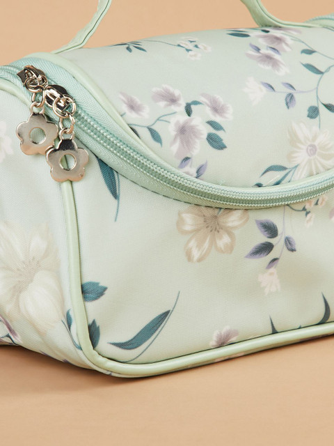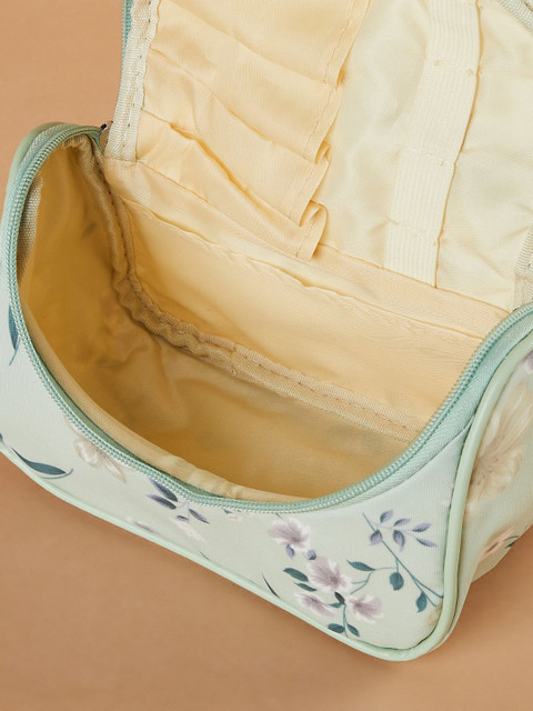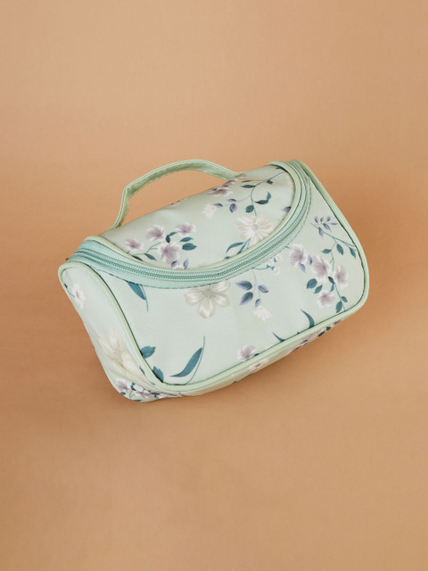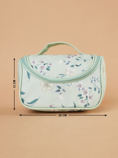 Green & Teal blue Floral printed personal organizer, has 1 main compartment with zip closure