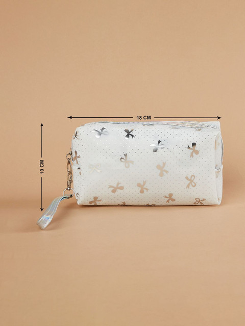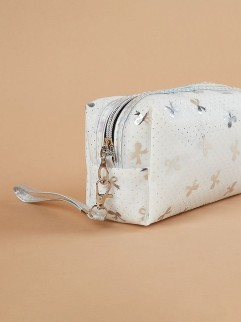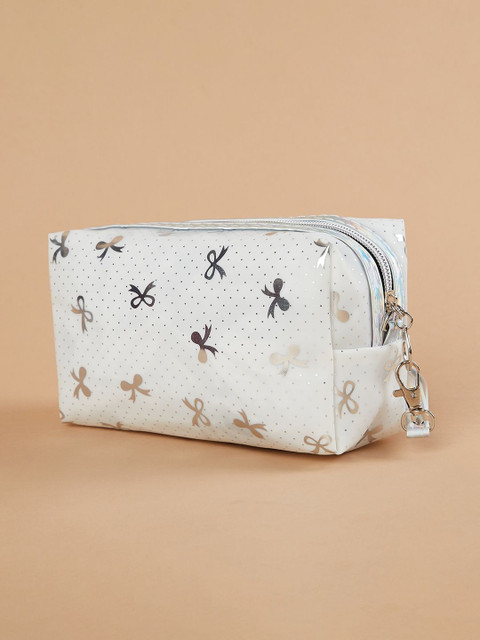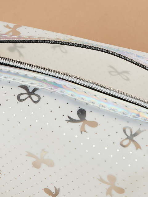 This vanity pouch comes with eyecatching bow prints and a secure zip closure.