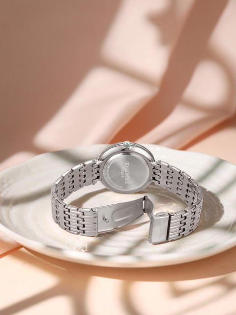 Strap style: Silver-Toned bracelet style, stainless steel strap with a foldover closure