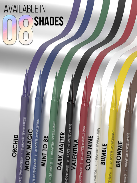 Unleash the power of color with the Glam21 Eye Poppers Matte Eyeliner collection. Explore a spectrum of bold, vibrant shades that deliver intense, high-pigment color. Designed to stay flawless for up to 12 hours, our smudge-proof and waterproof formula ensures your cat eyes or winged liner remain sharp all day long. With an easy-to-use pen-style applicator, achieving precise lines and perfect angles has never been easier. Elevate your eye game with the ultimate blend of style, performance, and longevity. Benefits Smudge Proof Waterproof Pen Style Design