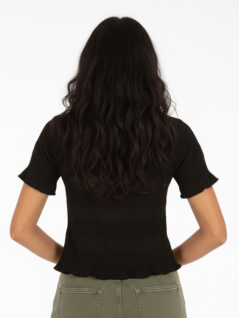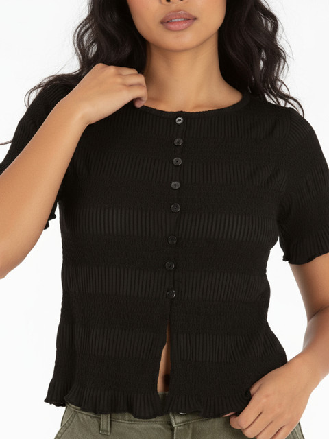 Indulge in the perfect blend of texture and flow. This top features delicate smocking for a flattering, comfortable fit that hugs your shape just right. Elevated by sweet button detailing and finished with playful front slits for beautiful movement, it’s a piece designed for effortless elegance.