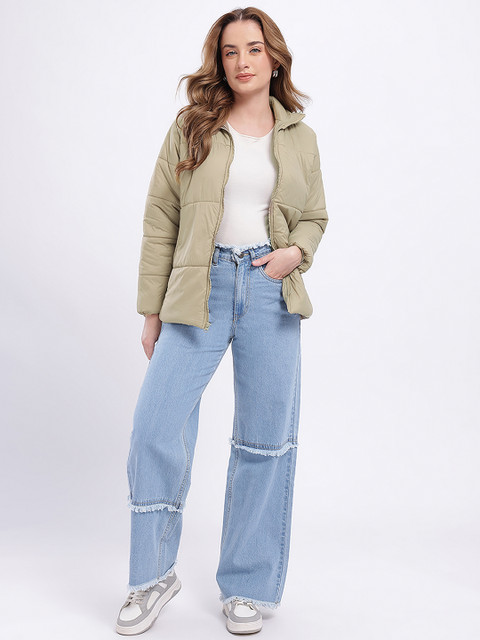This Relaxed Fit Puffer is the ultimate cozy betrayal–it feels like a blanket but looks like a runway piece. The spread collar adds that little bit of unexpected polish, so you can go from your 8 AM coffee run to your main feed looking unbothered and in charge.