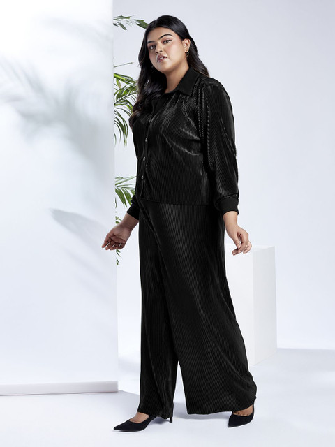 Globus Gloplus Accordian Pleats Shirt Style Top with Trousers Plus Size Party Co-Ord Set