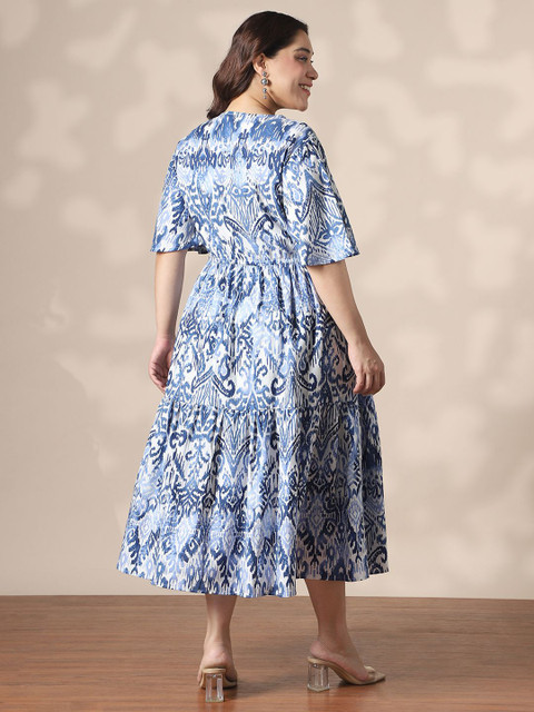 - Blue ethnic motifs print fit & flare dress