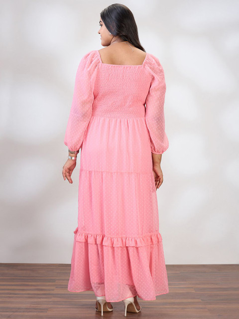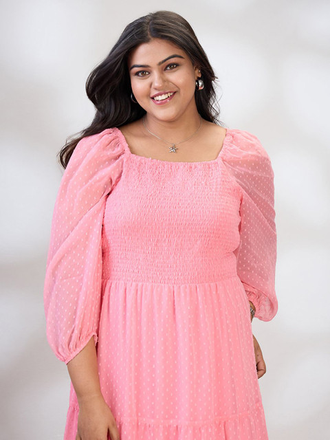 - Pink self design fit & flare dress