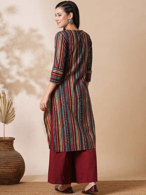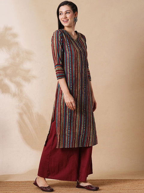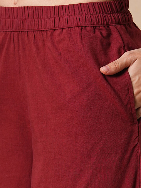 It’s pure cotton material , best for summer office and daily wear, The fitting of the plazo is perfect but the kurta is a little bit loose to me, baki mast hai.
