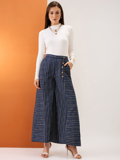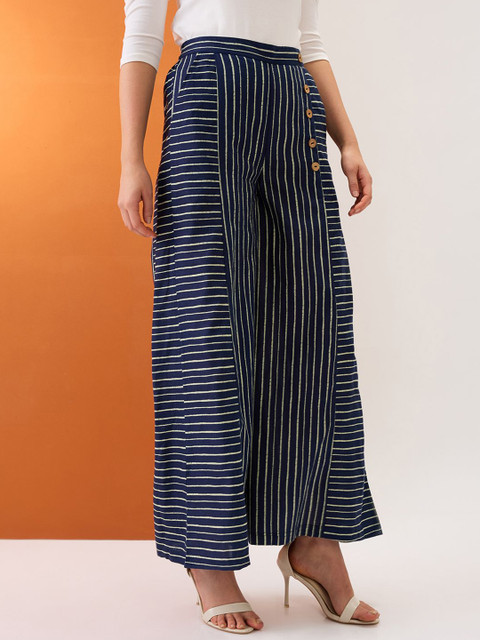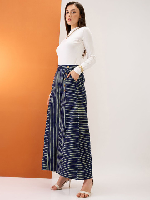 - Blue and white woven palazzos