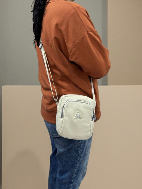 Cream-coloured Solid Sling Bag, with Zip Detail detail