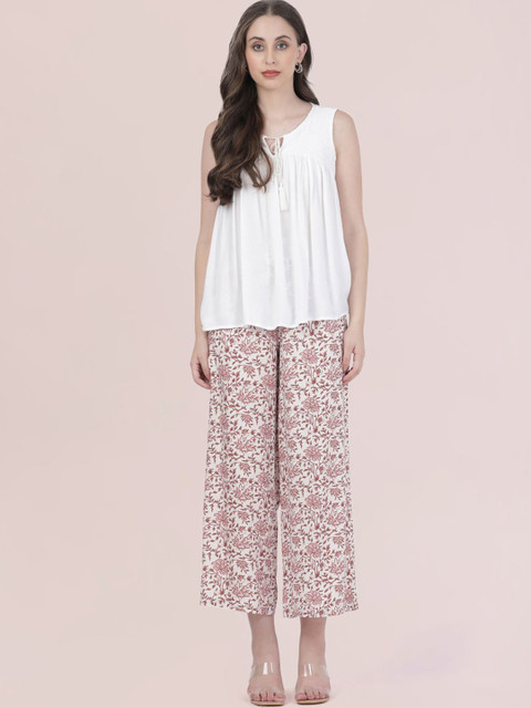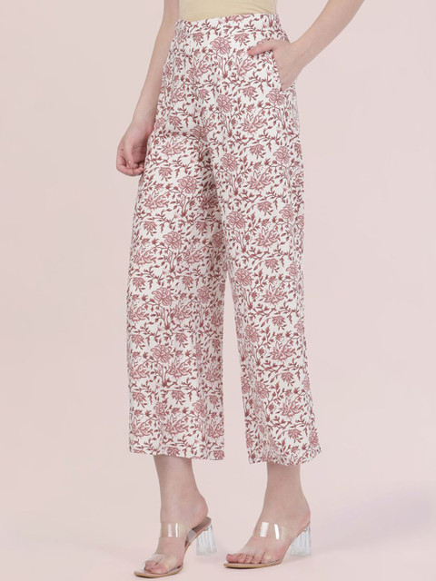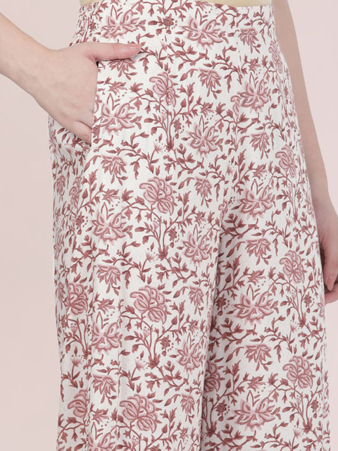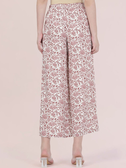 Go Colors Women Floral Printed Knitted Wide Leg Ethnic Palazzos