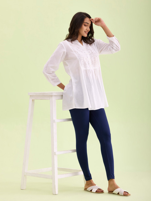 Loved these white leggings! The fabric is super soft, comfortable, and nicely stretchable. The fit is perfect and flatters the curves well. The material works great for summers as well as mid-winters. Totally worth buying! 🤍👖