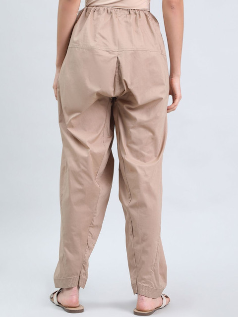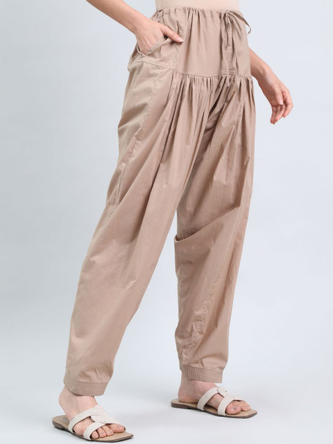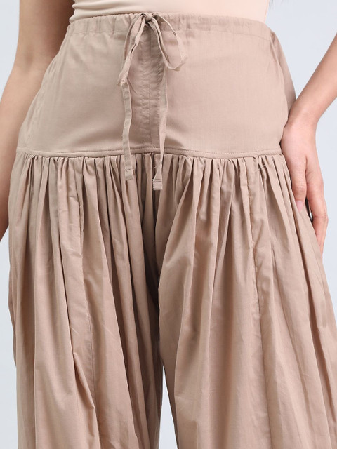 Beige solid loose fit salwar has a waistband with drawstring closure