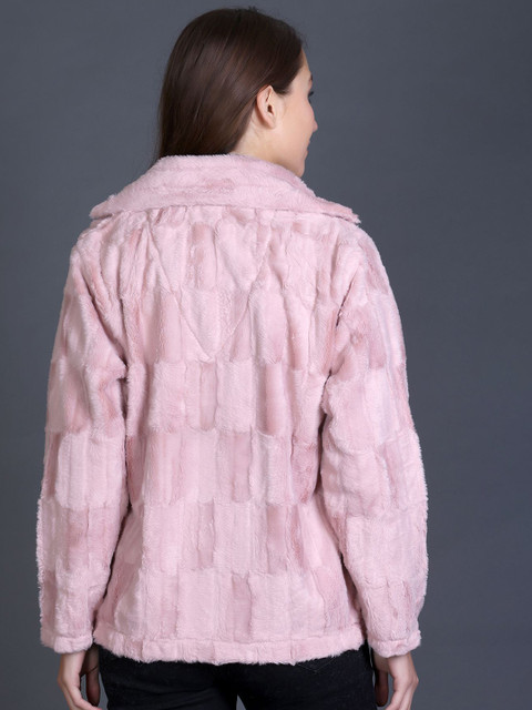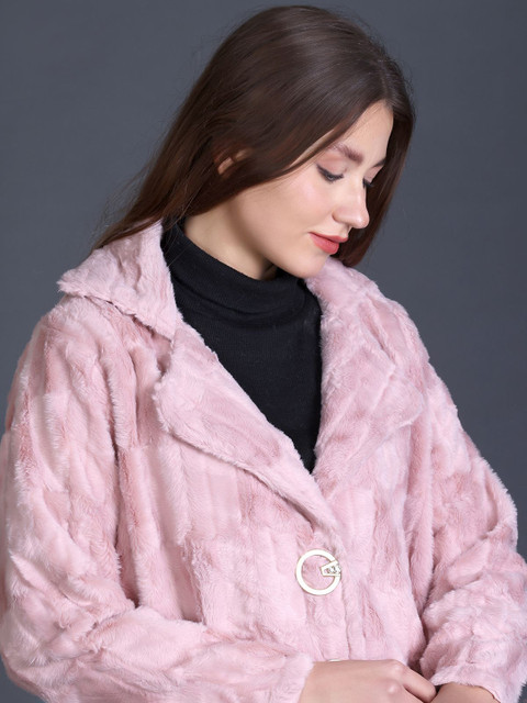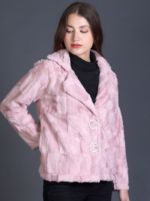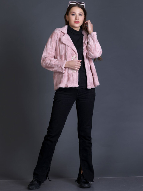 Pink self-design single-breasted coat, has Notched Lapel neck, long sleeves, button closure, two pockets, a straight hem