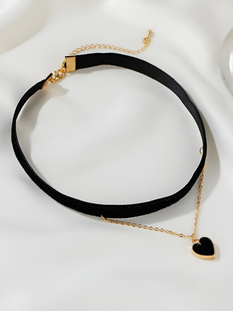 Gold-toned & black choker adorned with a dainty heart pendant