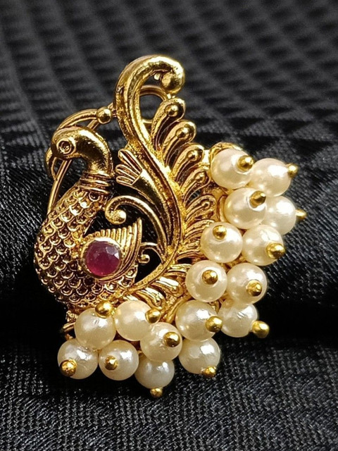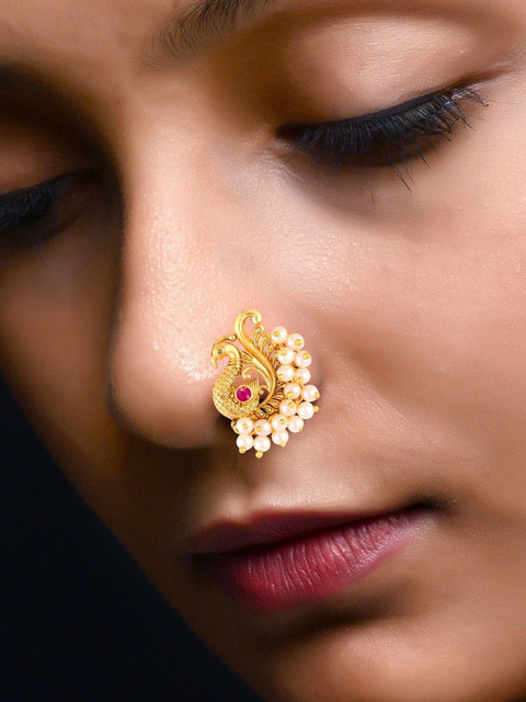 Vivastri Fashion Jewellery Gold Plated Alloy Nath Nose Pins Without Piercing For Women