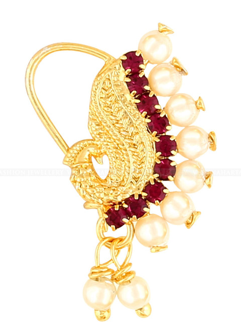 Vivastri Fashion Jewellery Gold Plated Alloy Nath Nose Pins Without Piercing For Women