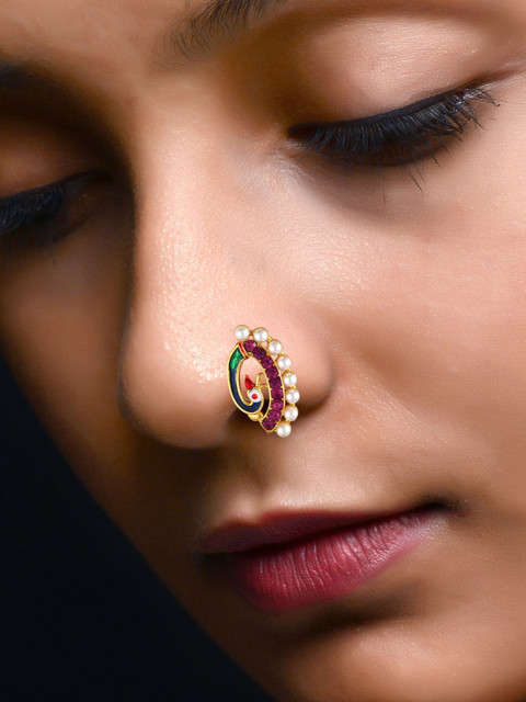 Vivastri Fashion Jewellery Gold Plated Alloy Nath Nose Pins Without Piercing For Women