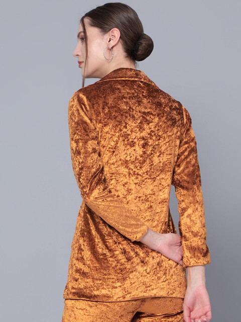 Mustard tailored slim-fit casual blazer, has a notched lapel, long sleeves, single-breasted with double button closure, two flap pockets