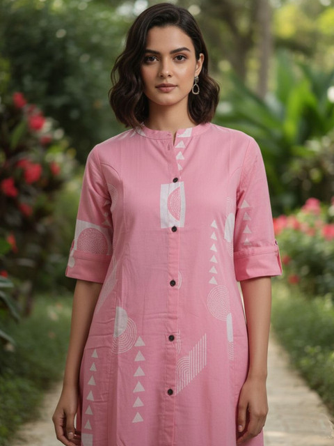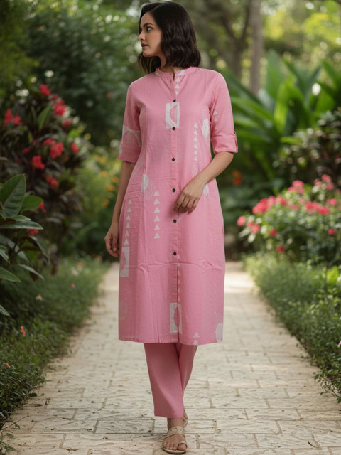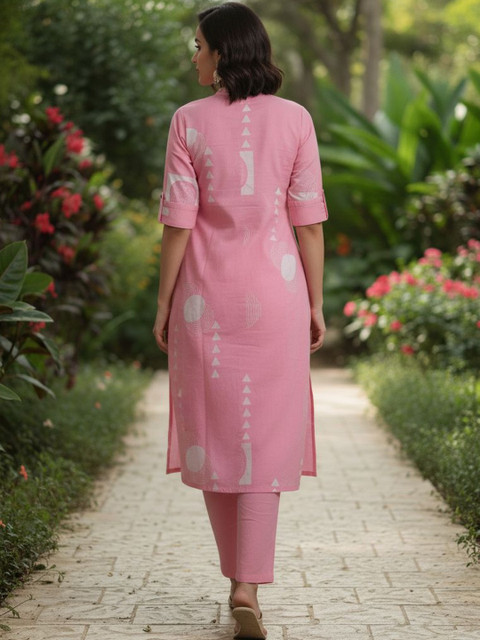 Pink printed Kurta with Trousers