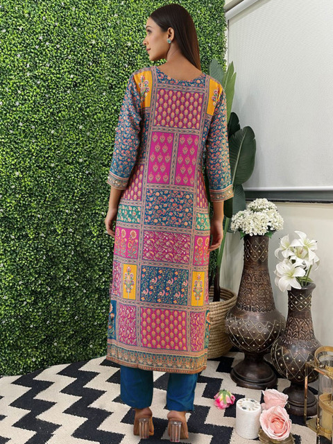 This floral printed round neck kurta with trouser is very comfortable and stylish. The floral print is beautiful and not overdone, giving a graceful look. Fabric quality is good, breathable, and suitable for daily use. The round neck design makes it simple yet classy. The kurta fits well, and the trouser is comfortable with a good finish. Perfect for office wear, casual outings, and daily use. Value for money.