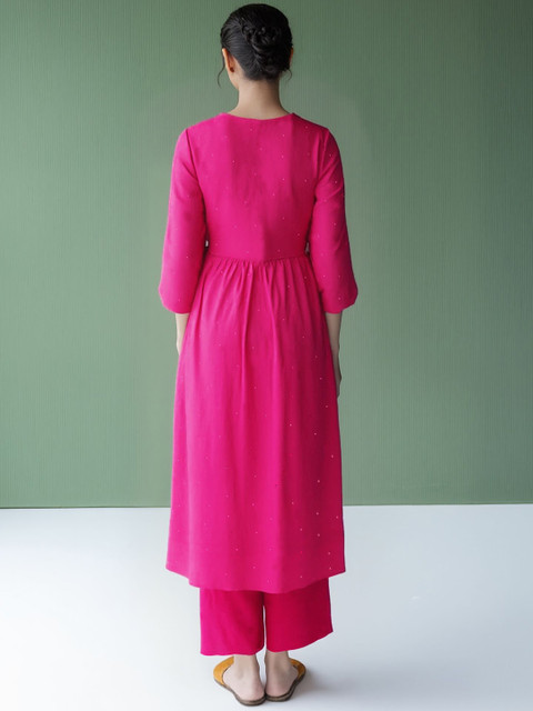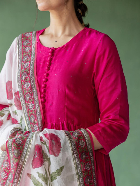 This vibrant pink kurta set is pure love! The flowy fit, subtle detailing, and that stunning dupatta with delicate prints and embroidery—it’s giving all the festive feels! Perfect blend of tradition and trend. 🌸✨