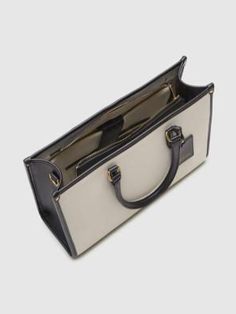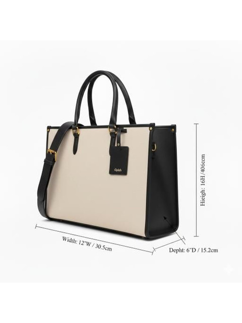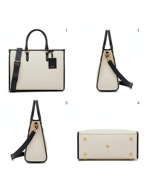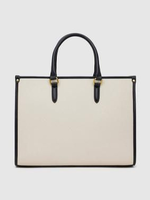 Beige Colourblocked Tote Bag 1 main compartment, has a Zip closure, 1 external pocket, Multiple inner pockets