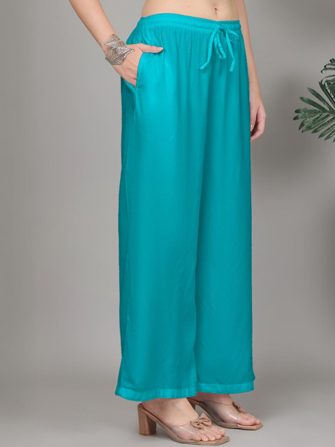 Women Rayon Solid palazzo with One Side Pocket are a stylish piece of casual clothing. Featuring a mid-rise, soft, elasticated waistband By Gracit. These palazzo promise a perfect and comfortable fit.