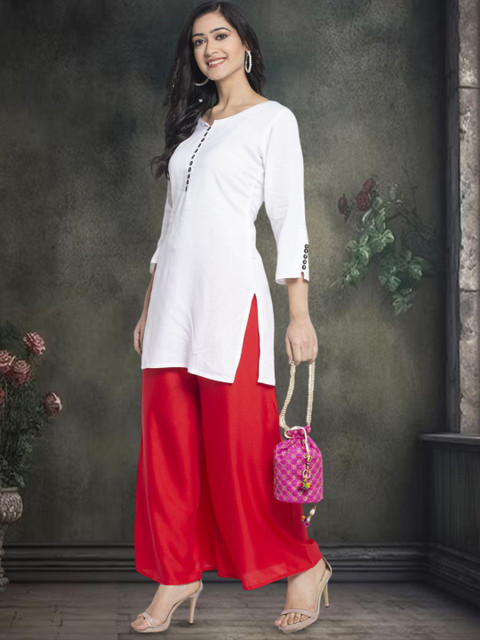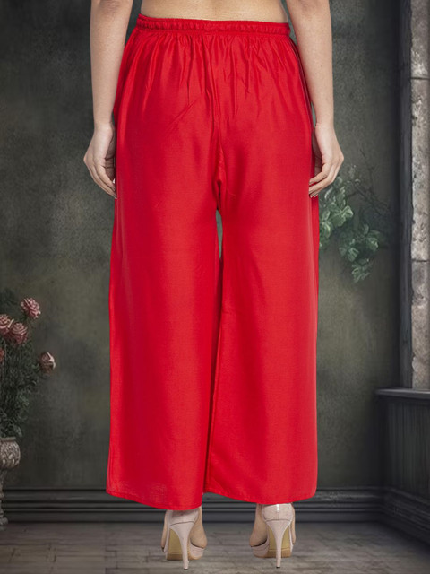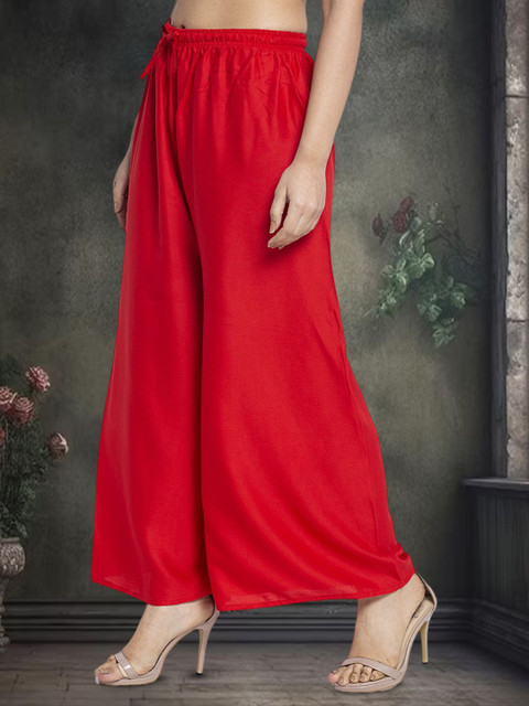 Women Red Rayon Solid palazzo are a stylish piece of casual clothing. Featuring a mid-rise, soft, elasticated waistband by Gracit- these palazzo promise a perfect and comfortable fit. Available in many shades, these pair well with indo-western tunics and Kurti.